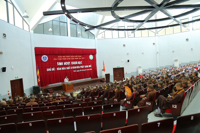 Chiều 26/4/2019 tại Học viện Phật giáo Việt Nam tại Huế (phường An Tây, thành phố Huế); Phòng Nghiên cứu Khoa học Học viện tiếp tục tổ chức buổi sinh hoạt khoa học định kỳ với chủ đề: “Văn hóa Huế và Văn hóa Phật giáo Huế” do Nhà Nghiên cứu Nguyễn Hữu Thông thuyết trình.