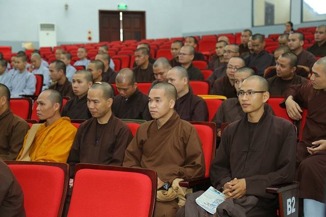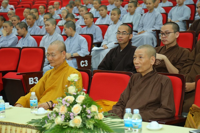 Chứng minh, tham dự buổi thuyết trình có HT. Thích Quang Nhuận - Thành viên Chỉ đạo Học viện PGVN tại Huế; HT. Thích Hải Ấn - Viện trưởng Học viện; TT.TS Thích Nguyên Đạt - Phó Viện trưởng đặc trách Nghiên cứu Khoa học Học viện; ĐĐ.TS Thích Hương Yên - Tổng Thư ký Học viện; chư Tôn đức Hội đồng Điều hành Học viện, chư Tôn đức Giáo thọ sư, chư Giảng sư, giảng viên cùng Tăng Ni sinh các khóa đang học tại Học viện.