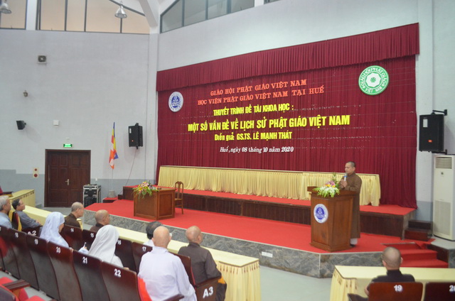 Chiều 08/10/2020 tại Học viện Phật giáo Việt Nam tại Huế (p.An Tây, Huế); GS.TS Lê Mạnh Thát đã thuyết trình, chia sẻ đến Tăng Ni sinh viên các khóa đề tài “Một số vấn đề về lịch sử Phật giáo Việt Nam”.