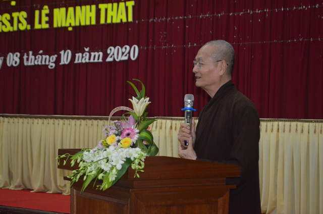 Hòa thượng Viện trưởng Thích Hải Ấn phát biểu, giới thiệu về Giáo sư trình bày, chia sẻ