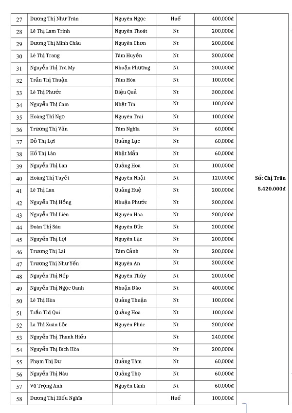 Phương danh cúng dường tháng 8 - 2020