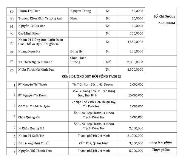 Phương danh cúng dường tháng 7 - 2020