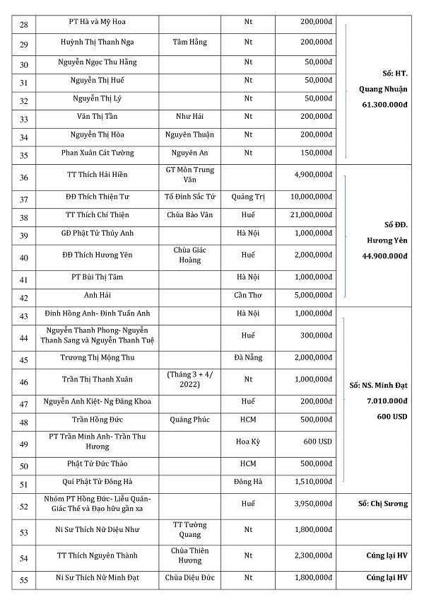 Phương danh cúng dường tháng 4 - 2022