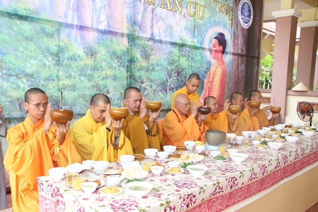 Sau lời tác bạch dâng lễ cúng dường, chư Tôn thiền đức đã cử hành nghi lễ Quá đường truyền thống. Qua sự thành tâm cúng dường đến chư Tôn thiền đức nhân mùa an cư, quý Đạo tràng Phật tử đã có dịp tạo phước lành vô lượng, nhờ giới đức tinh nghiêm và sự thanh tịnh của chư Tôn thiền đức mà đất nước thanh bình, nhân dân an lạc, cha mẹ hiện tiền bệnh tật và nghiệp chướng được tiêu trừ, cửu huyền thất tổ được siêu sanh Phật quốc.