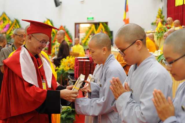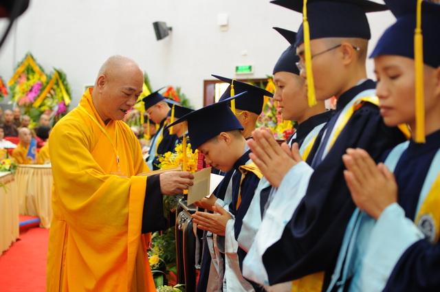 Hòa thượng Viện trưởng Thích Hải Ấn trao bằng Tốt nghiệp đến Tăng Ni sinh khóa VIII