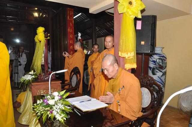 Hòa thượng Viện trưởng Thích Hải Ấn ghi sổ tang lưu niệm