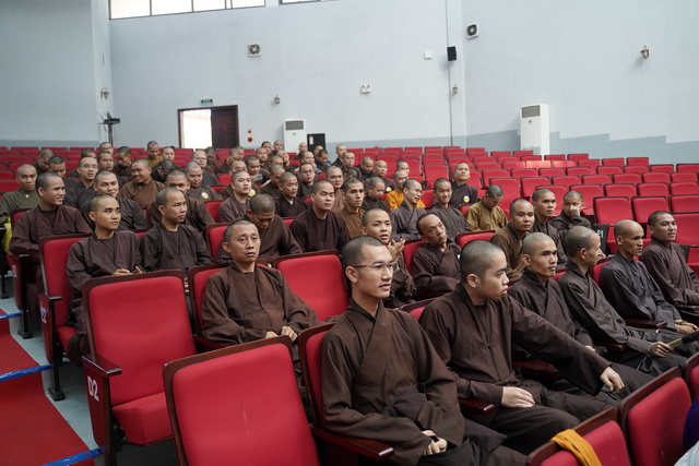 Hòa thượng Viện trưởng Thích Hải Ấn phát biểu, sách tấn đến Tăng Ni sinh