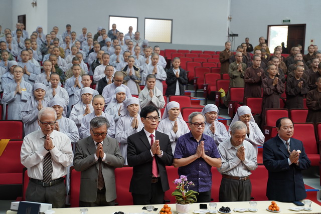 Ban đạo từ tại buổi lễ, Hòa thượng Viện trưởng Thích Hải Ấn đã có lời tri ân đến chư Tôn đức Hội đồng Điều hành, quý giảng sư, giảng viên đã hết lòng hoàn thành trọng trách của mình vì sự nghiệp đào tào Tăng tài của Học viện; Hòa thượng đã có lời sách tấn đến toàn thể Tăng Ni sinh, đánh giá cao quá trình nỗ lực học tập của Tăng Ni sinh các khóa trong năm vừa qua. Nhân dịp đón chào năm mới Canh Tý (2020), Hòa thượng đã có lời chúc sức khỏe, an lành đến chư Tôn thiền đức Tăng Ni, quý giảng sư, giảng viên cùng toàn thể Tăng Ni sinh Học viện.