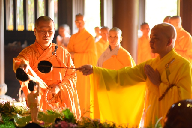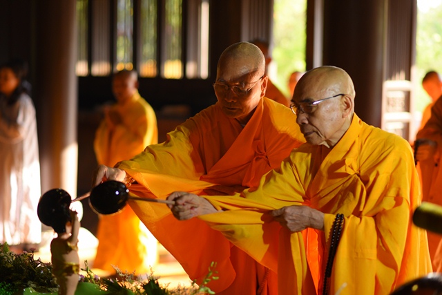 HT. Thích Quang Nhuận và HT. Thích Hải Ấn cử hành lễ tắm Phật (Mộc dục)