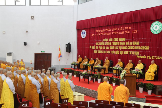 Chiều 20/7/2020 (30.5 Canh Tý); Trưởng lão Hòa thượng Thích Trí Quảng – Phó Pháp chủ kiêm Giám luật HĐCM GHPGVN, Viện trưởng Học viện PGVN TP.HCM đã thăm và có lời sách tấn đến Tăng Ni sinh Học viện PGVN tại Huế (p.An Tây, Huế) nhân mùa an cư năm Canh Tý, Pl.2564.