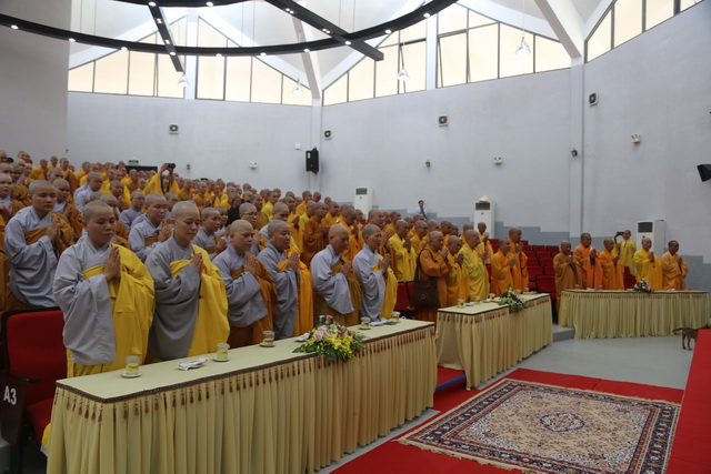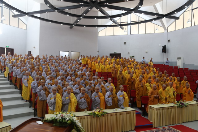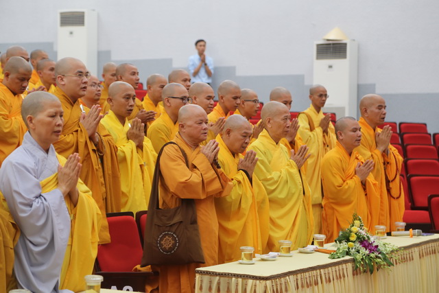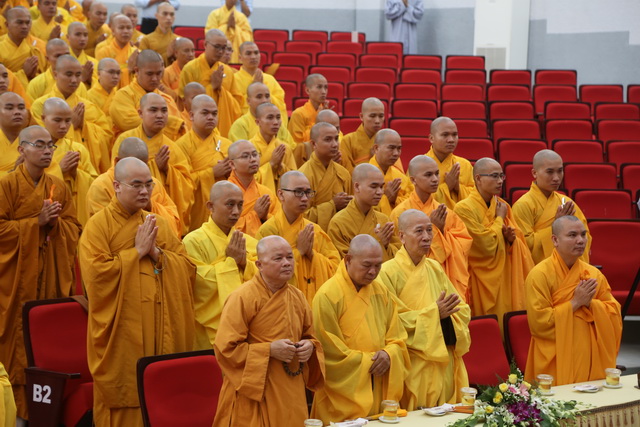 TT.TS Thích Nguyên Thành – UV HĐTS GHPGVN, Phó Trưởng Ban GDPG TƯ, Phó Viện trưởng kiêm Trưởng phòng Đào tạo Học viện PGVN tại Huế đã báo cáo sơ lược về hoạt động đào tạo của Học viện.