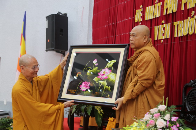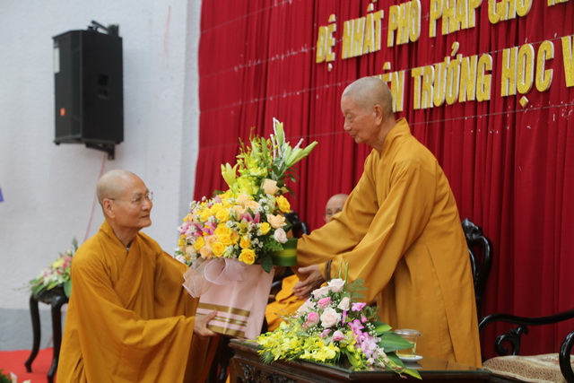 Học viện PGVN tại Huế tặng hoa và quà lưu niệm đến chư Tôn thiền đức