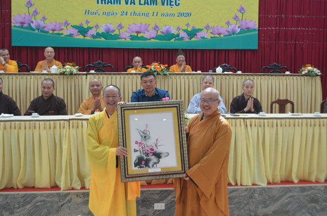 Tặng quà lưu niệm đến Học viện PGVN tại Huế