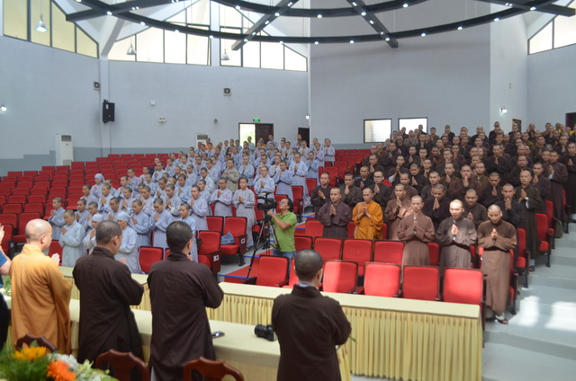 TT.TS Thích Thanh Quyết phát biểu chia sẻ, ban huấn từ đến Tăng Ni sinh