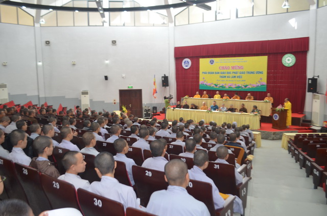 Đón tiếp phái đoàn tại Học viện có HT.Thích Đức Thanh – UVTT HĐTS GHPGVN, Thành viên Hội đồng Chỉ đạo Học viện; TT.TS Thích Nguyên Thành – UV HĐTS GHPGVN, Phó Trưởng ban GDPG TƯ, Phó Viện trưởng kiêm Trưởng Phòng Đào tạo Học viện; TT.TS Thích Nguyên Đạt – UV HĐTS GHPGVN, Phó Trưởng ban GDPG TƯ, Phó Viện trưởng kiêm Trưởng Phòng Đào tạo Sau đại học; ĐĐ.TS Thích Quang Tư – Phó Viện trưởng kiêm Trưởng phòng Thông tin Truyền thông; ĐĐ.TS Thích Hương Yên – Phó Viện trưởng kiêm Phòng Tổ chức Hành chính; TT.TS Thích Không Nhiên – Phó Viện trưởng kiêm Trưởng phòng Nghiên cứu khoa học; chư Tôn đức giáo thọ sư, giảng viên cùng Tăng Ni sinh các khóa của Học viện.