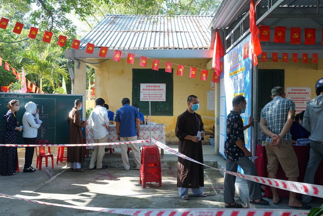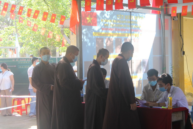 Tăng sinh nội xá đã có mặt đông đủ tại Khu vực bỏ phiếu số 06, phường An Tây, thành phố Huế thực hiện các thủ tục trình tự để tham gia bỏ phiếu chọn ra được những đại biểu có đức, có tài, xứng đáng đại diện cho ý chí và nguyện vọng của nhân dân.