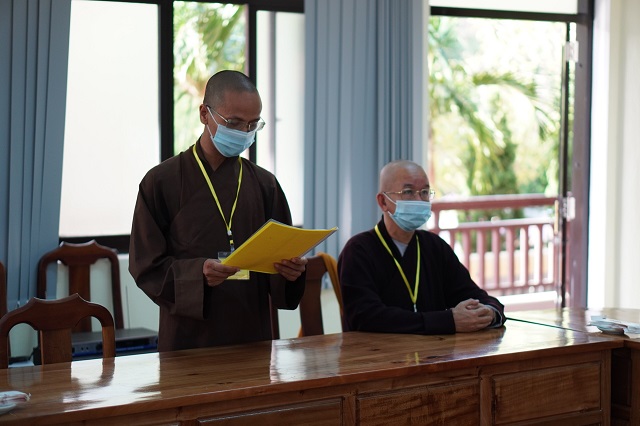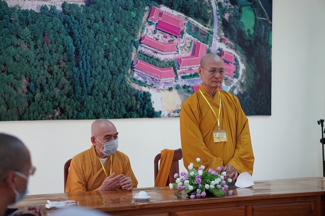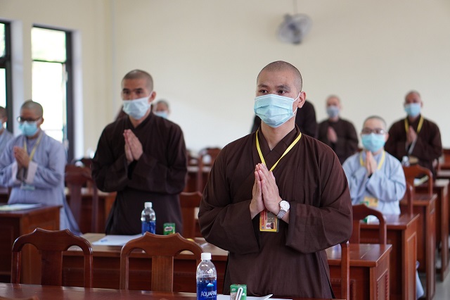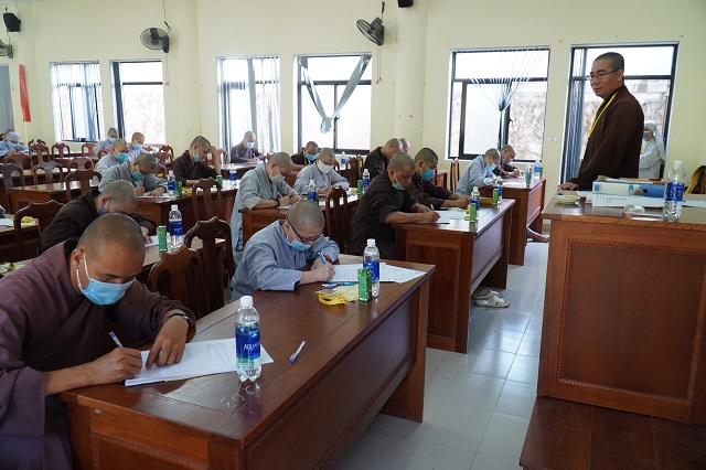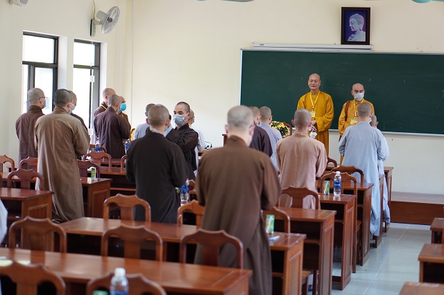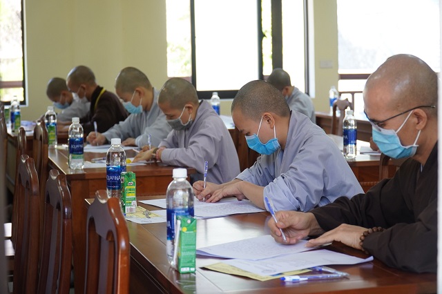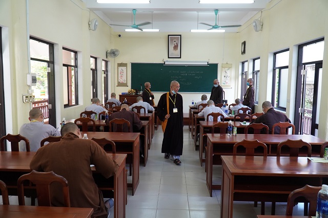 Trước khi các thí sinh thực hiện bài thi, HT.Thích Quang Nhuận – Thành viên Hội đồng Chỉ đạo Học viện và Hòa thượng Viện trưởng Thích Hải Ấn đã có những lời sách tấn, động viên đến các thí sinh, mong rằng các thí sinh sẽ chú tâm vào đề bài, bằng kiến thức đã được Học viện đào tạo thực hiện bài thi đạt kết quả thật tốt. Bên cạnh đó, các Tăng Ni thí sinh phải tuân thủ việc phòng chống dịch một cách hiệu quả nhất để kỳ thi được diễn ra suôn sẻ và hoàn thành viên mãn.