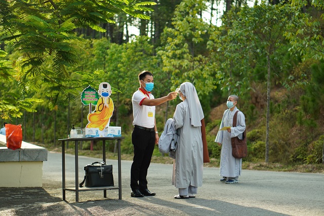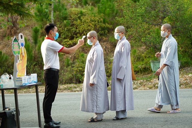 Thời điểm này, dịch Covid-19 vẫn còn ảnh hưởng rất lớn đến các tỉnh, thành phố trong cả nước. Để đảm bảo công tác phòng chống dịch một cách hiệu quả, an toàn, Hội đồng Điều hành Học viện đã phổ biến đến Tăng Ni sinh phải luôn tuân thủ nguyên tắc 5K của Bộ Y tế, trước khi vào phòng thi tất cả các thí sinh phải đo thân nhiệt, rửa tay sát khuẩn đồng thời mang khẩu trang đúng cách, an toàn.