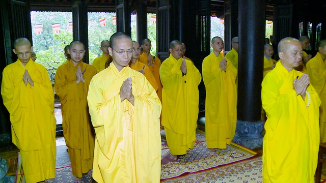 TT.TS Thích Nguyên Thành xướng lễ, trì tụng kinh Di giáo cầu nguyện
