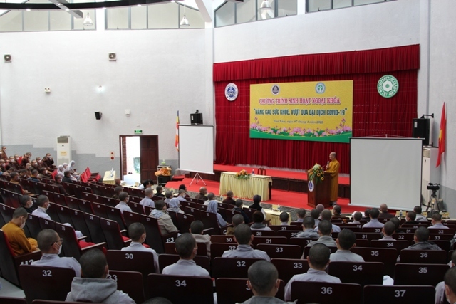 PGS.TS Doãn Ngọc Hải, PGS.TS Trương Thuyết Mai và Y sư Đặng Đức Truyền đã trình bày các chuyên đề liên quan, một số vấn đề về chăm sóc và nâng cao sức khỏe cho Tăng Ni, phòng chống dịch Covid-19 và điều trị hậu Covid-19 hiệu quả, tư vấn về dinh dưỡng và sức khỏe, các vấn đề cần lưu ý đối với chế độ ăn chay, vai trò của thuốc Nam và Đông y trong điều trị bệnh hiệu quả, khám bệnh bằng nguyên lý Đông y và kê đơn cho một số Tăng Ni (tim mạch, cơ xương khớp, thừa cân…), vai trò rèn luyện phục hồi chức năng vận động đối với sức khỏe, giới thiệu môn Shinri (Nhật Bản)…