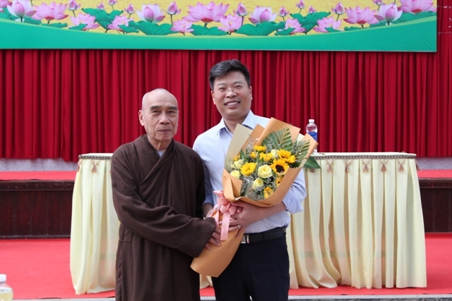 HT.Thích Quang Nhuận tặng hoa đến PGS.TS Doãn Ngọc Hải