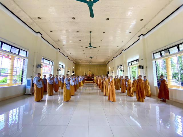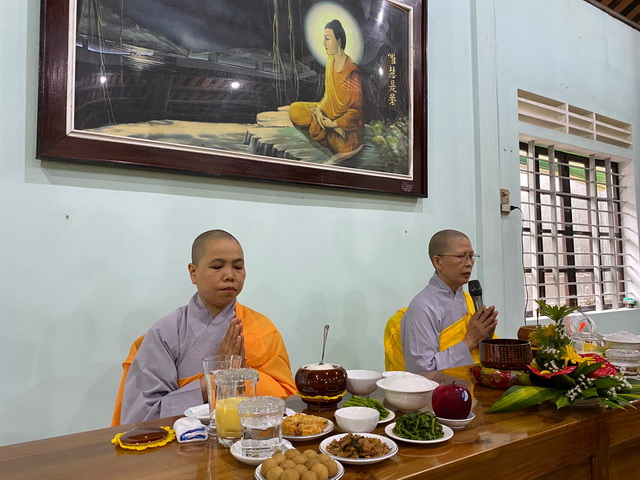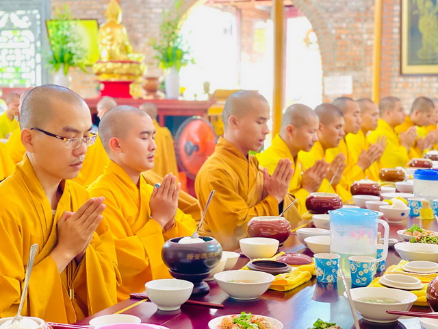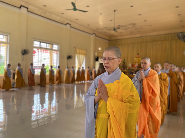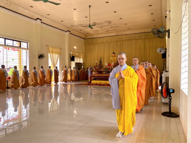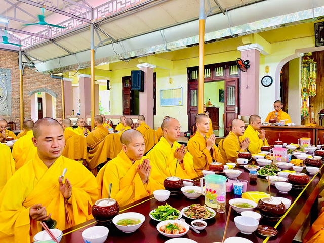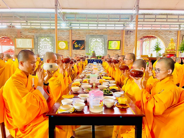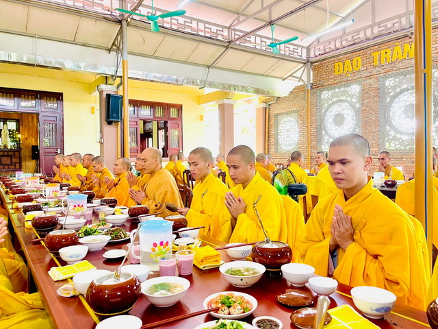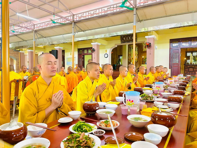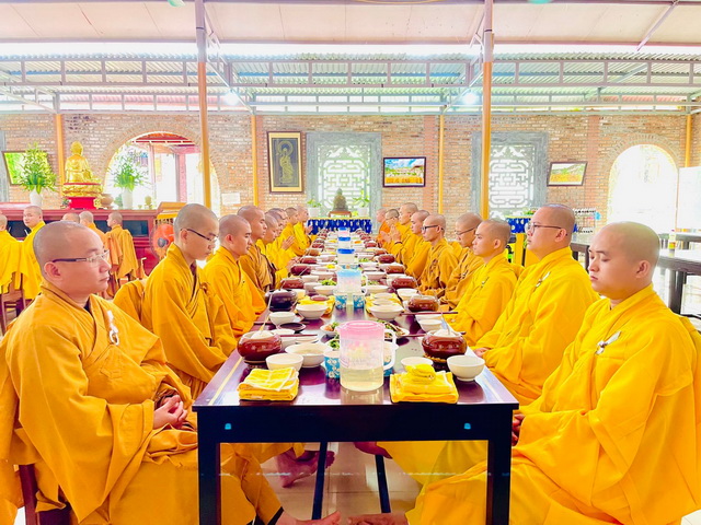 Sau khi hoàn thành khóa lễ, dưới sự hướng dẫn của chư Tôn đức Ban Quản lý Nội xá, toàn thể Ni chúng vân tập tại Trai đường thực hiện thời Quá đường đầu tiên trong mùa An cư Kiết hạ Pl.2566.