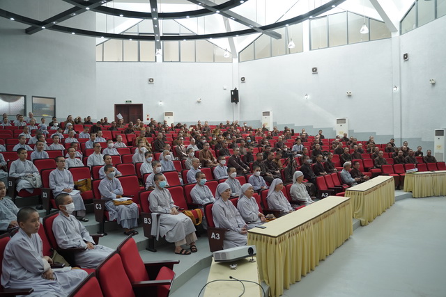 Đón tiếp thân mật phái đoàn tại Học viện có HT.Thích Quang Nhuận, Thành viên Hội đồng Chỉ đạo Học viện; HT.Thích Hải Ấn, UVTT HĐTS GHPGVN, Phó Trưởng Ban Thường trực Ban Giáo dục Phật giáo Trung ương, Viện trưởng Học viện; TT.TS Thích Nguyên Thành, UV HĐTS GHPGVN, Phó Trưởng Ban Giáo dục Phật giáo Trung ương, Phó Viện trưởng kiêm Trưởng Phòng Đào tạo Học viện; TT.TS Thích Nguyên Đạt, UV HĐTS GHPGVN, Phó Trưởng Ban Giáo dục Phật giáo Trung ương, Phó Viện trưởng kiêm Trưởng phòng Đào tạo sau Đại học; ĐĐ.TS Thích Quang Tư – Phó Viện trưởng kiêm Trưởng Phòng Thông tin Truyền thông Học viện; ĐĐ.TS Thích Hương Yên – Phó Viện trưởng kiêm Trưởng Phòng Hành chính Học viện; chư Tôn đức Hội đồng Điều hành Học viện, chư Tôn đức giáo thọ cùng toàn thể Tăng Ni sinh các khóa đang theo học tại Học viện.