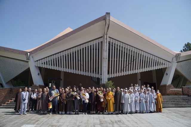 Chụp hình lưu niệm tại Hội trường Hoa Sen, Học viện PGVN tại Huế