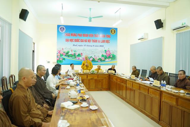 Sáng 17/8/2022 tại Học viện PGVN tại Huế (phường An Tây, Huế); phái đoàn Viện Trần Nhân Tông, Đại học Quốc gia Hà Nội do PGS.TS Nguyễn Tiến Vinh, Phó Viện trưởng làm trưởng phái đoàn đã thăm và làm việc với Học viện Phật giáo Việt Nam tại Huế.