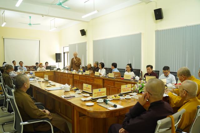 Đón tiếp thân mật phái đoàn tại Học viện có HT.Thích Quang Nhuận, Thành viên Hội đồng Chỉ đạo Học viện; HT.Thích Hải Ấn, Viện trưởng Học viện; TT.TS Thích Nguyên Đạt, Phó Viện trưởng kiêm Trưởng Phòng Sau đại học; ĐĐ.TS Thích Quang Tư, Phó Viện trưởng kiêm Trưởng Phòng TTTT; TT.TS Thích Không Nhiên, Phó Viện trưởng kiêm Trưởng Phòng Nghiên cứu; ĐĐ.TS Thích Hương Yên, Phó Viện trưởng kiêm Trưởng Phòng Hành chính cùng chư Tôn đức Hội đồng Điều hành Học viện và giảng viên.