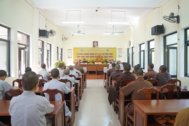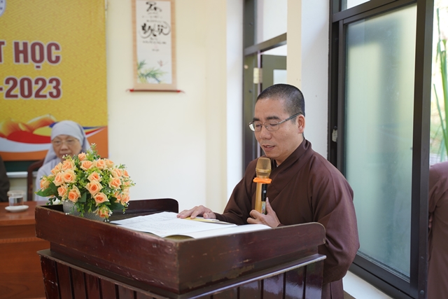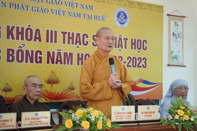 Hòa thượng Viện trưởng Thích Hải Ấn đã có lời huấn từ tại lễ khai giảng, mong rằng các Tăng Ni học viên sẽ cố gắng nghiên cứu chuyên sâu về ngành học, đọc nhiều tài liệu để kết quả học tập đạt thành tựu trong 02 năm nghiên cứu. Đồng thời Hòa thượng cũng chia sẻ về học bổng Trí Quang, lúc sinh tiền Đức Trưởng lão Hòa thượng Thích Trí Quang luôn luôn quan tâm đến công tác đào tạo Tăng tài, và Tăng Ni sinh hôm nay chính là những nhân sự tương lai đảm trách các công tác Phật sự của Giáo hội.