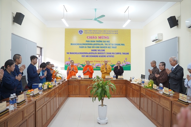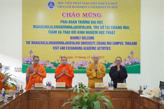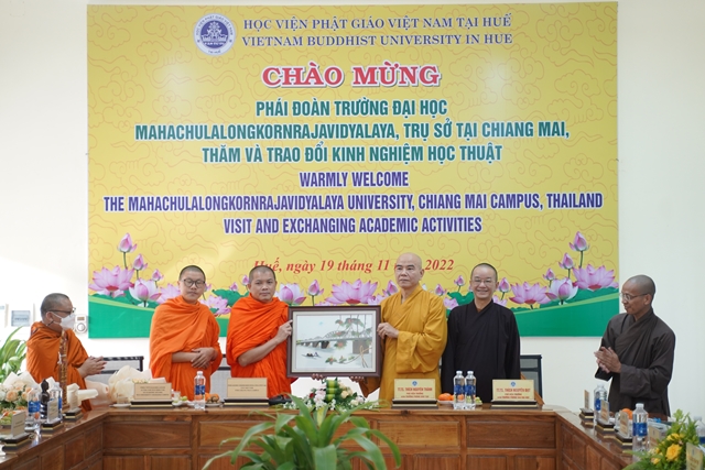 Sáng 19/11/2022 tại Học viện PGVN tại Huế (phường An Tây, Huế); đoàn Đại học Mahachulalongkornrajavidyalaya (Chiang Mai, Thái Lan) do Thượng tọa Phó Hiệu trưởng Phrakhrusiriborrommathatpitak làm trưởng phái đoàn đã thăm và trao đổi kinh nghiệm học thuật với Học viện PGVN tại Huế.