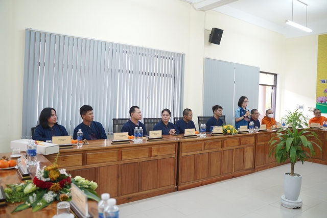 TT.TS Thích Nguyên Thành đã có lời phát biểu chào mừng, giới thiệu sơ lượt về sự hình thành và phát triển, cũng như công tác đào tạo của Học viện Phật giáo Việt Nam tại Huế, đồng thời bày tỏ niềm hân hoan khi được đón tiếp phái đoàn thăm và trao đổi kinh nghiệm về giáo dục Phật giáo.