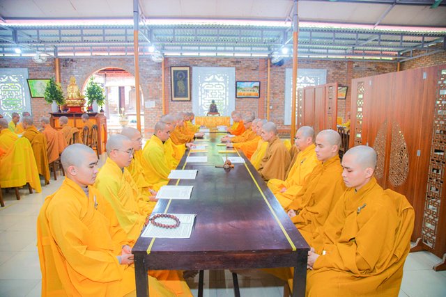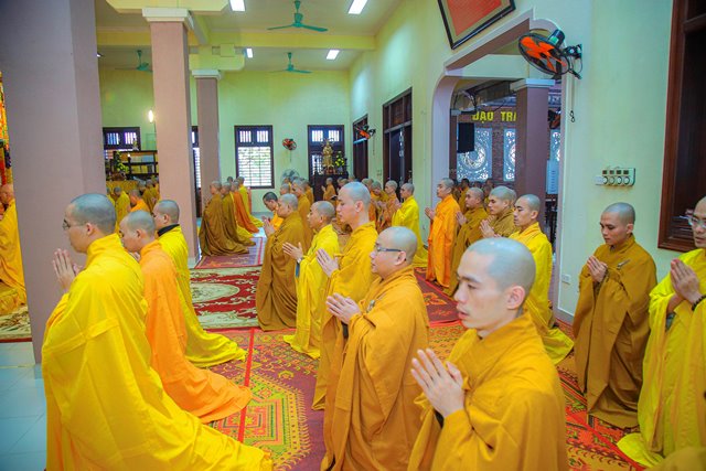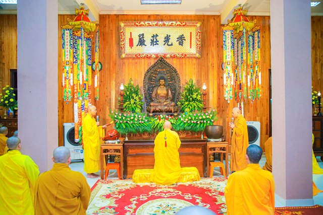 HT.Thích Chơn Hương, Thành viên HĐCM GHPGVN, Giáo phẩm Chứng minh BTS GHPGVN tỉnh TT.Huế, Thành viên Hội đồng Chỉ đạo Học viện PGVN tại Huế đã niêm hương bạch Phật, chư Tôn đức Ban Quản lý Nội xá cùng toàn thể Tăng sinh cử hành nghi thức bố tát.