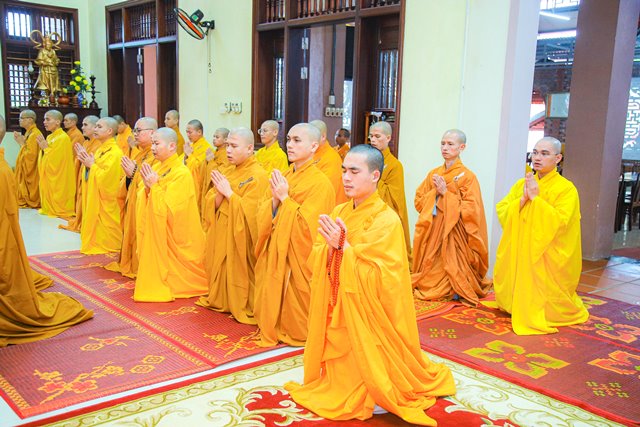 Tăng sinh Học viện PGVN tại Huế bố tát, thính giới kỳ cuối năm Nhâm Dần