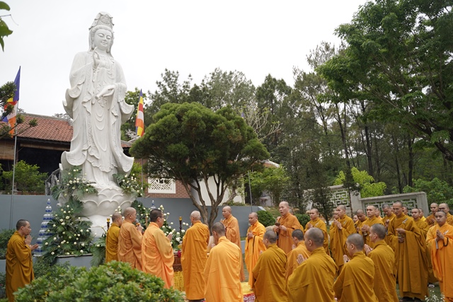 Tại buổi lễ, chư tôn đức Giáo phẩm Chứng minh đã niêm hương cầu nguyện, HT.Thích Quang Nhuận cùng chư Tôn thiền đức đã cử hành lễ sái tịnh và nghi lễ an vị. Tượng Đức Quán Thế Âm Bồ Tát được tôn trí trang nghiêm tại khuôn viên của Tăng xá Học viện, một không gian xanh vườn thiền để các Tăng sinh nội xá đảnh lễ, chiêm bái.