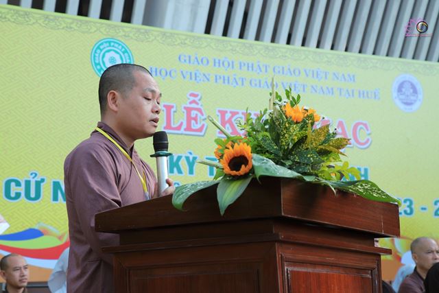 TT.TS Thích Nguyên Thành, UV HĐTS GHPGVN, Phó Trưởng ban GDPG Trung ương, Phó Trưởng ban Trị sự kiêm Trưởng Ban GDPG GHPGVN tỉnh TT.Huế, Phó Viện trưởng Thường trực kiêm Trưởng phòng Đào tạo Học viện, Phó Chủ tịch Thường trực Hội đồng thi đã phát biểu khai mạc kỳ tuyển sinh.