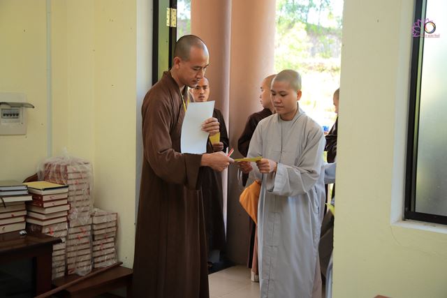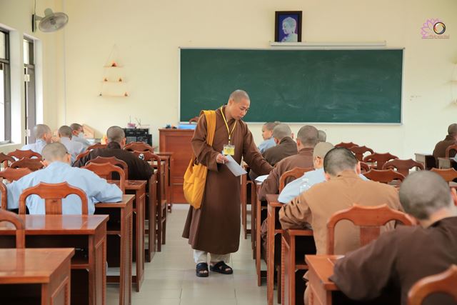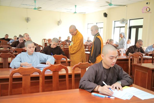 Sau lễ khai mạc, 128 Tăng Ni thí sinh đã thực hiện môn thi đầu tiên. Buổi thi diễn ra nghiêm túc, đúng nội quy dưới sự hướng dẫn, giám sát chặt chẽ của chư Tôn đức giám thị.