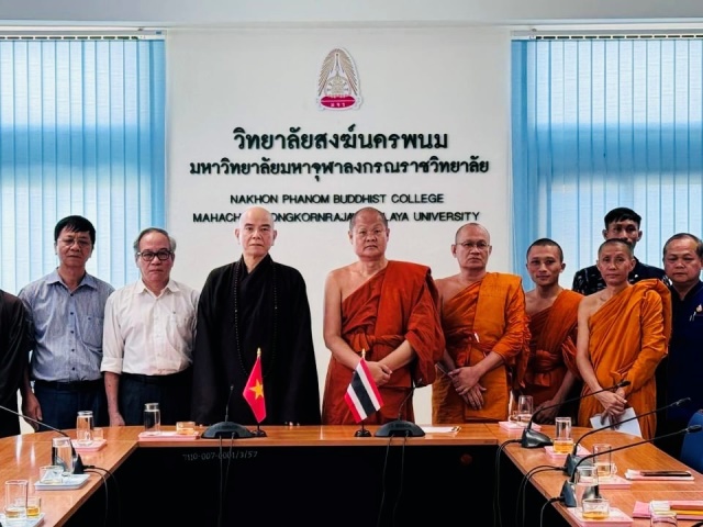 Chiều cùng ngày, phái đoàn Học viện PGVN tại Huế đã có buổi làm việc với Đại học MCU Nakhon Phanom. Buổi làm việc nhằm thảo luận về vấn đề hợp tác học thuật, ký kết Biên bản ghi nhớ (MOU) giữa hai trường Đại học đã được ký kết trước đó 5 năm tại Học viện PGVN tại Huế ngày 17/09/2019. Buổi làm việc cởi mở và đi vào từng vấn đề cụ thể như: Đẩy mạnh hợp tác giáo dục toàn diện, trao đổi sinh viên nghiên cứu học tập các chương trình đào tạo phù hợp, trao đổi giảng viên các lĩnh vực chuyên môn bằng ngôn ngữ Thái và Việt, trao đổi nguồn tài liệu, các thông tin nghiên cứu, tham gia các hoạt động nghiên cứu, văn hóa, tăng cường các buổi gặp, làm việc giữa giảng viên, nhân viên và sinh viên giữa hai đơn vị…