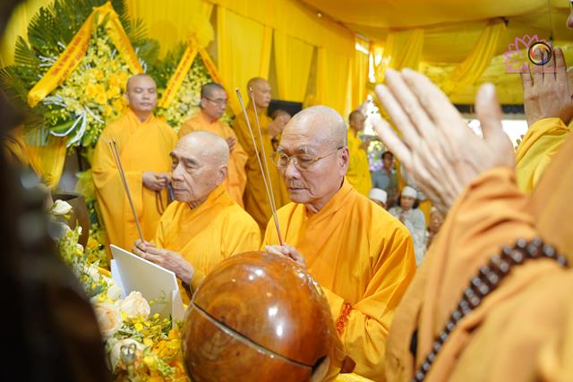 Đoàn có Trưởng lão Hòa thượng Thích Quang Nhuận, Thành viên Hội đồng Chứng minh GHPGVN, Thành viên Hội đồng Chỉ đạo Học viện; HT.Thích Hải Ấn, UVTT HĐTS GHPGVN, Viện trưởng Học viện PGVN tại Huế; chư Tôn đức Hội đồng Điều hành Học viện, quý giáo thọ, giảng viên và Tăng Ni sinh các khóa.