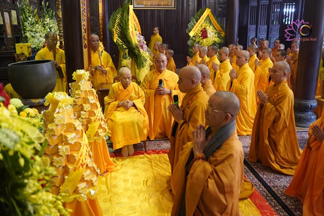 Phái đoàn Học viện Phật giáo Việt Nam tại Huế do TT.TS Thích Nguyên Thành, UV HĐTS GHPGVN, Phó Trưởng Ban Giáo dục Phật giáo Trung ương, Phó Viện trưởng Thường trực kiêm Trưởng phòng Đào tạo Học viện PGVN tại Huế làm trưởng phái đoàn, chư Tôn đức Lãnh đạo Hội đồng Điều hành Học viện cùng Tăng Ni sinh các khóa.