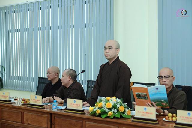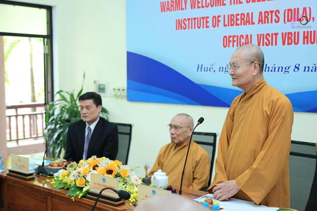 Tại buổi gặp và làm việc, Hoà thượng Viện trưởng Thích Hải Ấn đã có lời phát biểu chào mừng, lời thăm hỏi đến các thành viên trong phái đoàn, nhấn mạnh rằng Học viện PGVN tại Huế rất hân hoan khi được gặp, trao đổi và phối hợp làm việc với phái đoàn. Chư Tôn đức các phòng ban Học viện cũng giới thiệu sơ lược về lịch sử hình thành Học viện, các chương trình đào tạo,… đến các thành viên trong phái đoàn.