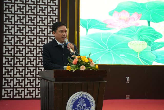 Mở đầu chương trình, Hòa thượng Viện trưởng Thích Hải Ấn đã phát biểu chào mừng phái đoàn Ban Tôn giáo Chính phủ, tri ân sâu sắc đến bà Trần Thị Minh Nga, Phó Trưởng ban Ban Tôn giáo Chính phủ đã dành thời gian đến Học viện trình bày những nội dung trọng tâm của Luật Tín ngưỡng, Tôn giáo. Hòa thượng cũng bày tỏ niềm vui mừng khi Tăng Ni sinh được tiếp cận kiến thức pháp luật quan trọng, đồng thời nhấn mạnh đây là nội dung cần tiếp tục nghiên cứu để vận dụng đúng đắn trong quá trình hoạt động tôn giáo tại Việt Nam.