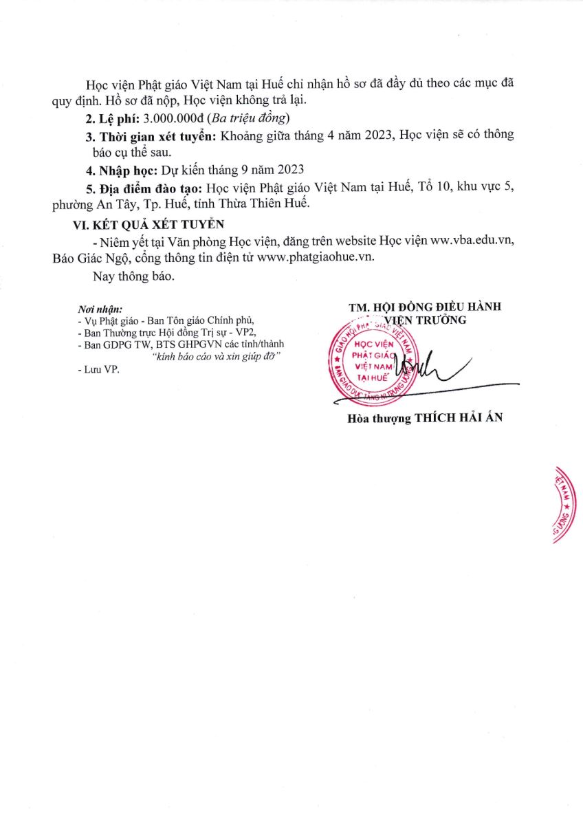 Nơi nhận: Văn phòng Học viện (Tổ 10, khu vực 5, phường An Tây, thành phố Huế, tỉnh Thừa Thiên Huế - Điện thoại: 0234.6275.217)