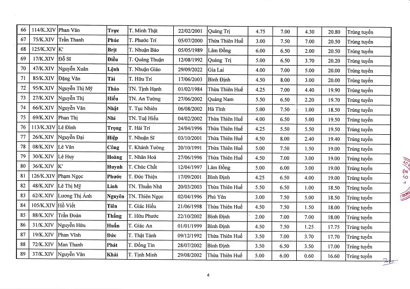 Dưới đây là Kết quả tuyển sinh Cử nhân Phật học khóa XIV (2023-2027):