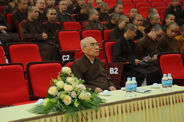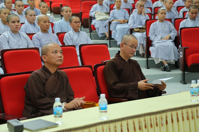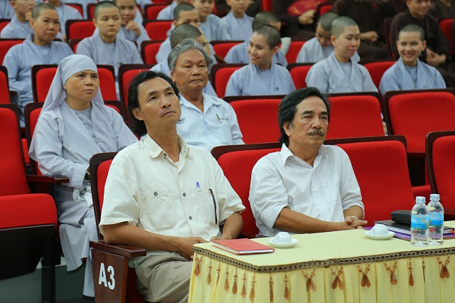 Chứng minh, tham dự buổi thuyết trình có HT. Thích Quang Nhuận - Thành viên Chỉ đạo Học viện PGVN tại Huế; HT. Thích Hải Ấn - Viện trưởng Học viện; TT.TS Thích Nguyên Đạt - Phó Viện trưởng đặc trách Nghiên cứu Khoa học Học viện; ĐĐ.TS Thích Hương Yên - Tổng Thư ký Học viện; chư Tôn đức Hội đồng Điều hành Học viện, chư Tôn đức Giáo thọ sư, chư Giảng sư, giảng viên cùng Tăng Ni sinh các khóa đang học tại Học viện.