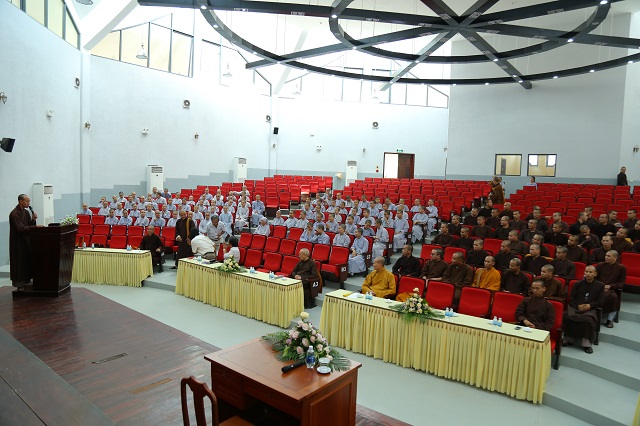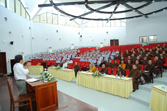 Mở đầu buổi sinh hoạt, Hòa thượng Viện trưởng Thích Hải Ấn đã có lời phát biểu chỉ đạo, đánh giá cao chương trình sinh hoạt khoa học định kỳ do Phòng nghiên cứu khoa học Học viện tổ chức. Hòa thượng mong rằng các buổi sinh hoạt khoa học sẽ giúp Tăng Ni sinh viên tiếp thu được nhiều kinh nghiệm trong việc tiếp nhận, nghiên cứu các đề tài khoa học. Cuối lời phát biểu, Hòa thượng Viện trưởng đã gửi lời tri ân đến các Nhà Nghiên cứu, giảng viên đã đồng hành cùng Hội đồng Điều hành Học viện trình bày, chia sẻ đến toàn thể Tăng Ni sinh.