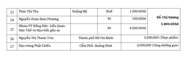 Phương danh cúng dường tháng 12 - 2020