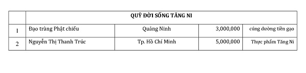 Phương danh cúng dường tháng 12 - 2021
