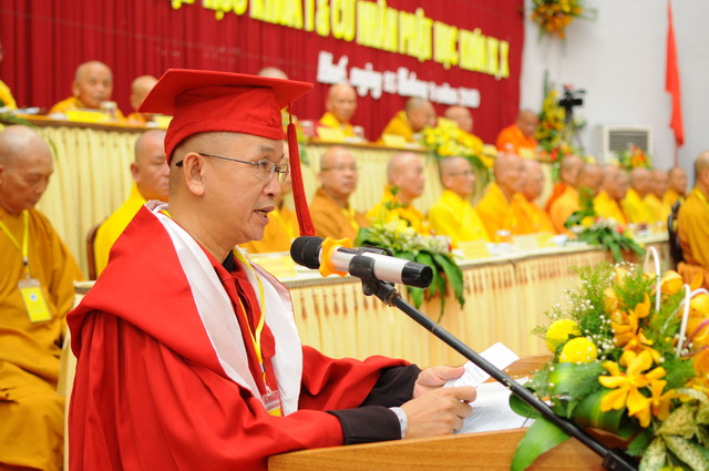 TT.TS Thích Nguyên Thành đọc Quyết định công nhận Tăng Ni sinh tốt nghiệp khóa VIII